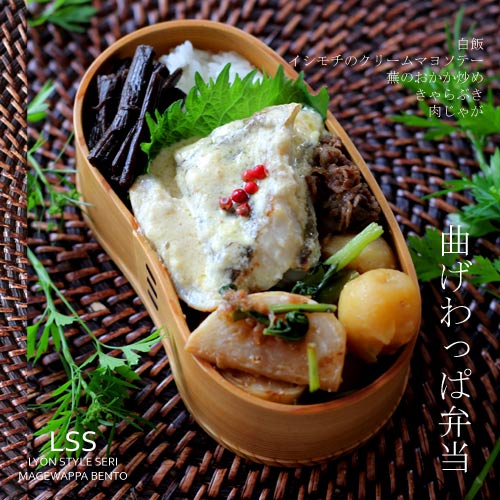 今日の曲げわっぱ弁当はおからハンバーグです。
