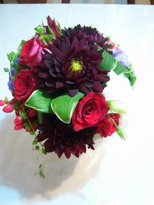 ローズルージュのブーケ。贅沢にバラをギュット中央にまとめて