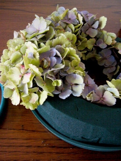今日は家にあったお花たちのお手入れをしながら、この素敵なアジサイを使ってブーケを束ねました。