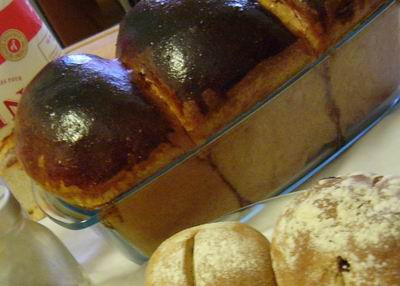 Aujourd'hui, j'ai fait des petits pains differents et une grose brioche.