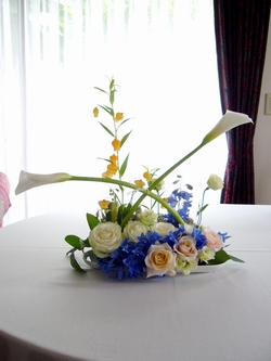 玄関に飾っても、テーブルに飾っても楽しめるように四方見のアレンジに仕上げました。