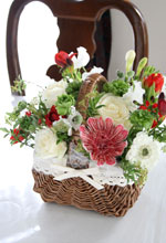 今回のアレンジには思い出深いレンギョウのお花の加えて