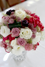 秋のお花を混ぜ込んで、上手い具合に花留めにしていきます。