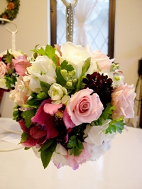 ボールブーケはオアシスが固定されていないのでなおさら挿しにくくて難しかったかな??