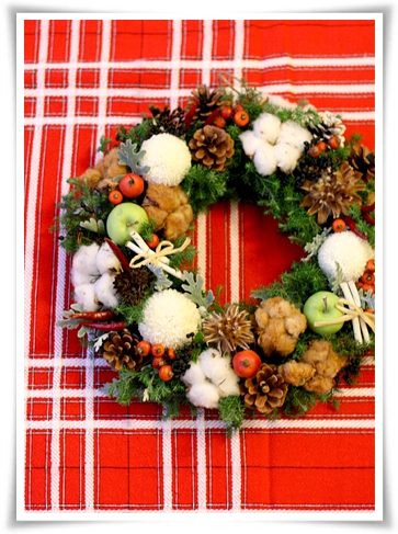 赤い実を使おうか・・・白だけで仕上げるか・・・
