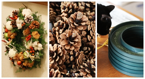 たっぷりの針葉樹で、作業テーブルの上が モッサモッサになる季節です(笑)