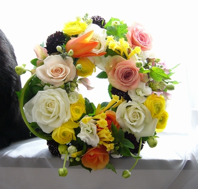 それはそれで素敵だけれど、明るいお花で作ると新鮮な感じよね。