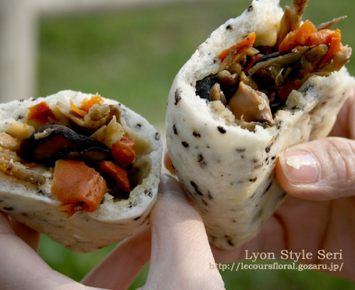 キンピラ饅頭を買って外のベンチで食べることに。