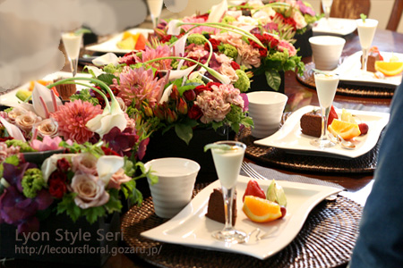 生徒さんにテーブルを綺麗にセッティングしていただいて