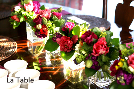 ティータイムにはブーケをテーブルに1列に並べデコレーション。