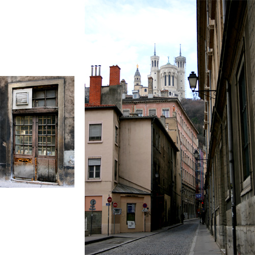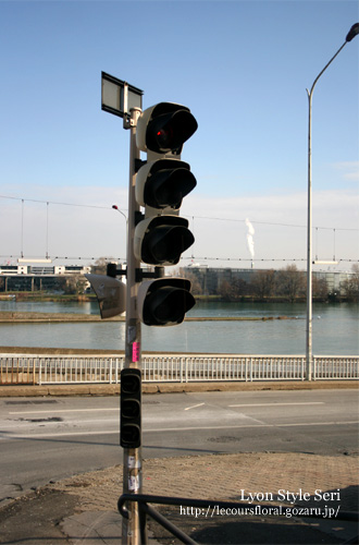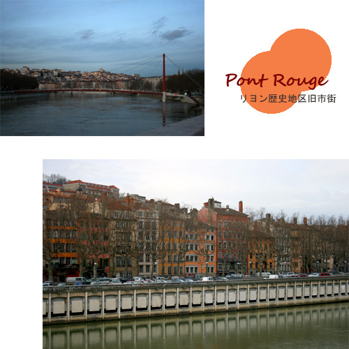 ソーヌ川にかかる赤い橋を渡って旧市街へ。