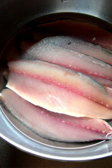 船頭さん「やっぱ、醤油掛けて食べたいでしょ?だったら薄味に30分だね。今の時期は脂がのってるからもうちょっと漬け込んでも大丈夫。」