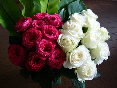 グリーン、白、ピンク、ダークレッド、水色と花色豊富に揃っていたので 使いたい色だけをセレクトして貰いました。