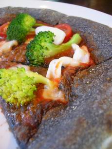 本日のピザはイカ墨生地のヤリイカとブロッコリーのピザ。