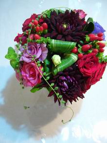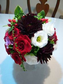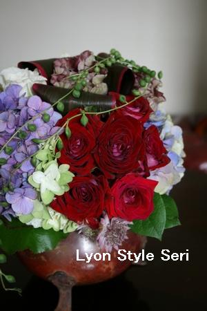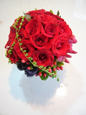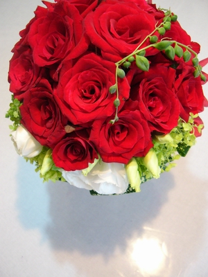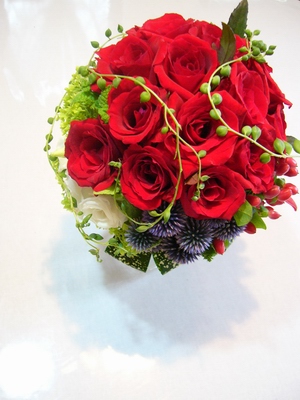 ローズルージュのブーケ。贅沢にバラをギュット中央にまとめて