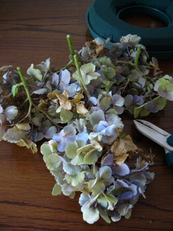 今日は家にあったお花たちのお手入れをしながら、この素敵なアジサイを使ってブーケを束ねました。