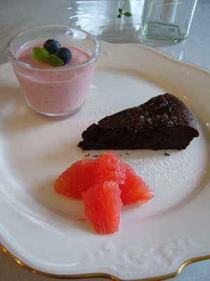 半生ガトーショコラとフレッシュグレープフルーツです。