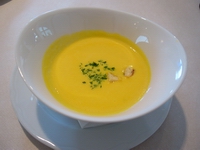 今日のスープは人参(?)のポタージュ。