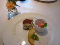 本日のデザートはフランスのチョコレートを使ったガトーショコラと