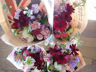 花をややきつめに新聞紙で巻き