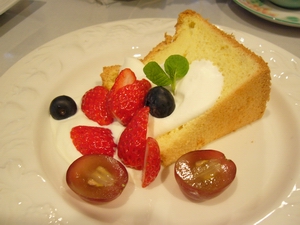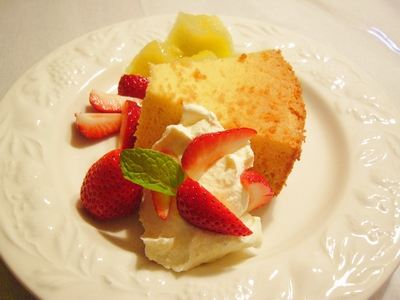 今日はふわふわシフォンケーキに美味しい海老名のイチゴを添えました。