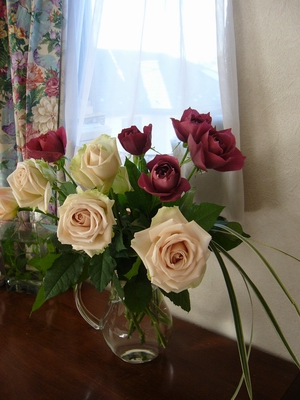 (左)優しい色のバラをお選びになりました。(イメージにぴったり!)