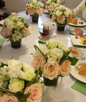 お花の色は皆さんに選んでもらったので、みなさん違う感じに仕上がっています。ティータイムのテーブルがとても華やかになりました♪