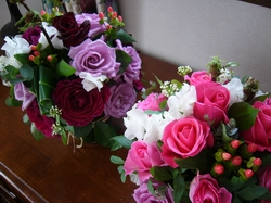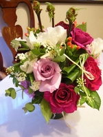 (右)紫のグラデーションが楽しめる3色のバラで仕上げました。
