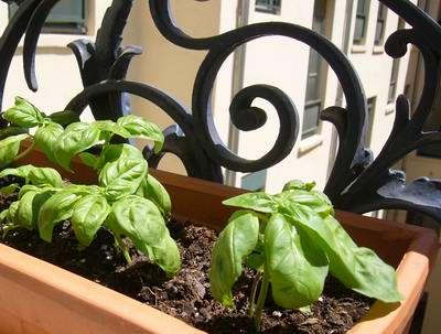ベランダのバジル、シブレットも入ってます★