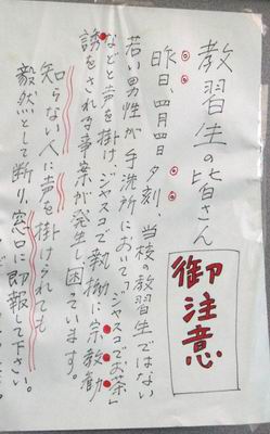 (宗教勧誘に御注意の張り紙を思い出す・・・けど若い男性じゃない し・・・)